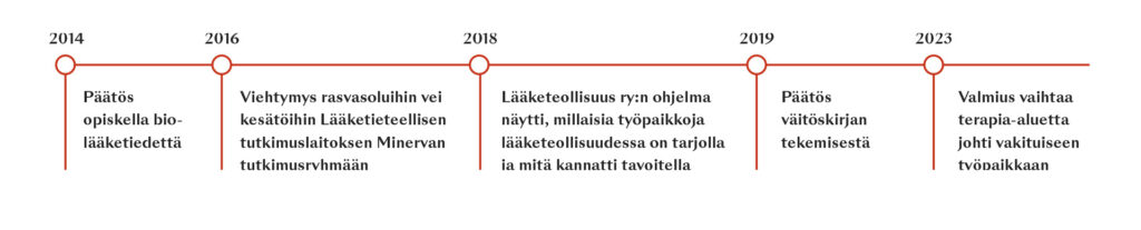- Työpaikat: Lääketieteellinen tutkimuslaitos Minerva, Helsingin yliopisto ja Boehringer Ingelheim