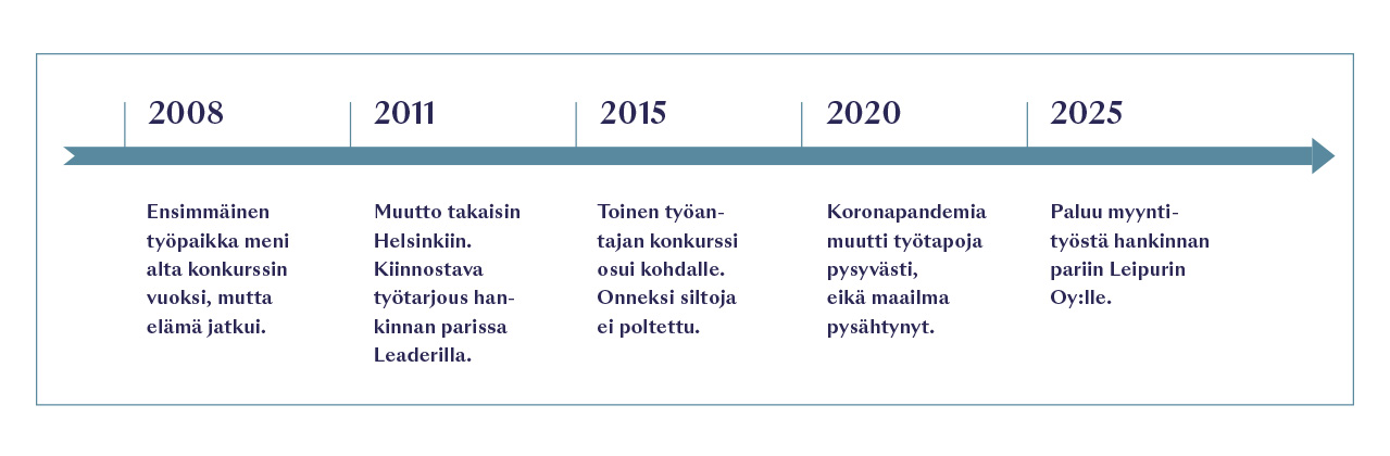 – Se oli kova koulu heti työelämän alussa, mutta selvisin siitä ja sain uuden työpaikan.