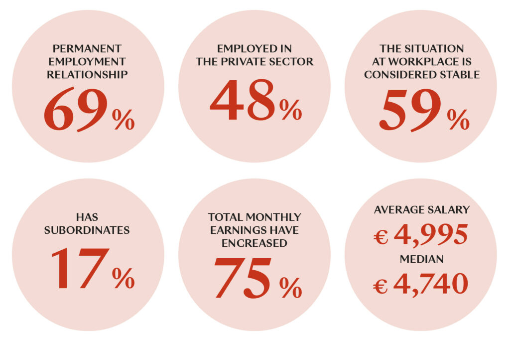 Respondents’ salary levels have increased, and based on the data there has been no deterioration in the quality of employment. However, the weakened economic and labour market situation is reflected to some extent in declining confidence about the future.