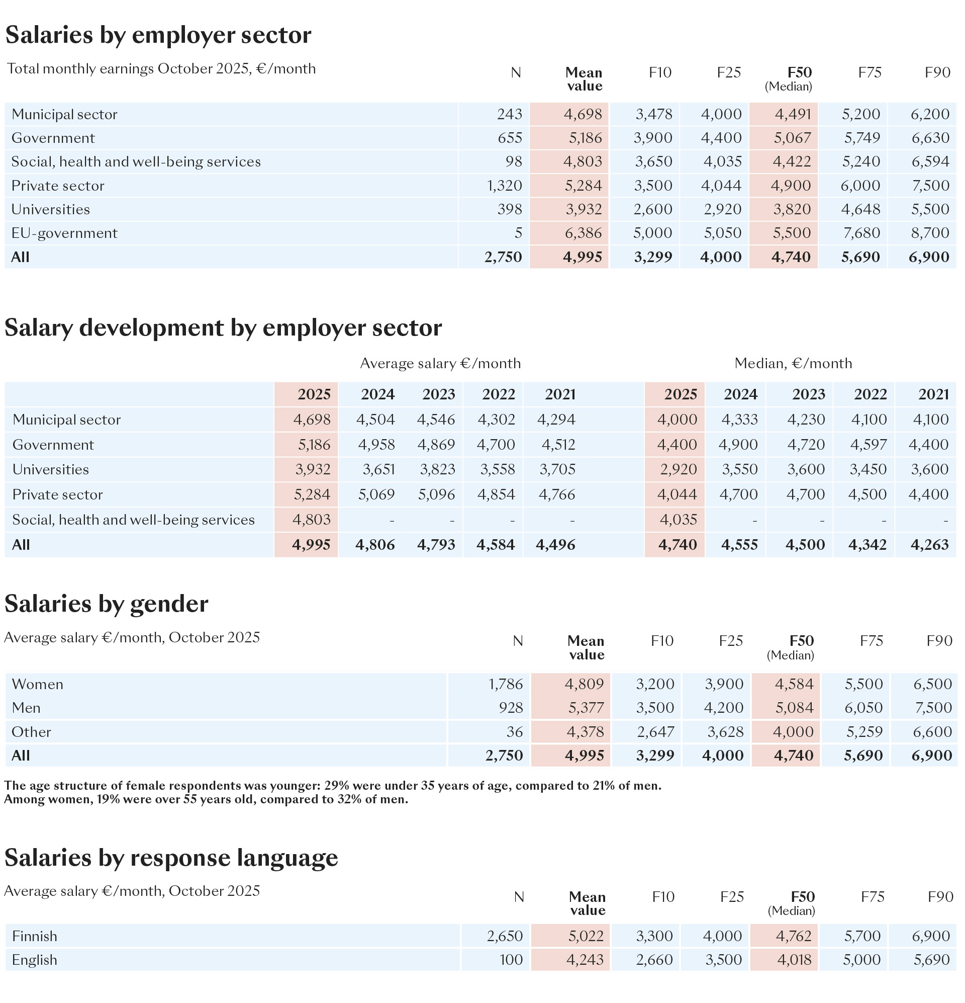 A total of 130 Loimu members responded in English. Of them, only 5% reported that they regularly discuss their salary with their supervisor, compared to 17% among Finnish-language respondents. A significant difference was also observed among those who reported never discussing their salary. Among Finnish-language respondents, 25% stated that they never discuss their salary, compared to as many as 33% of English-language respondents.