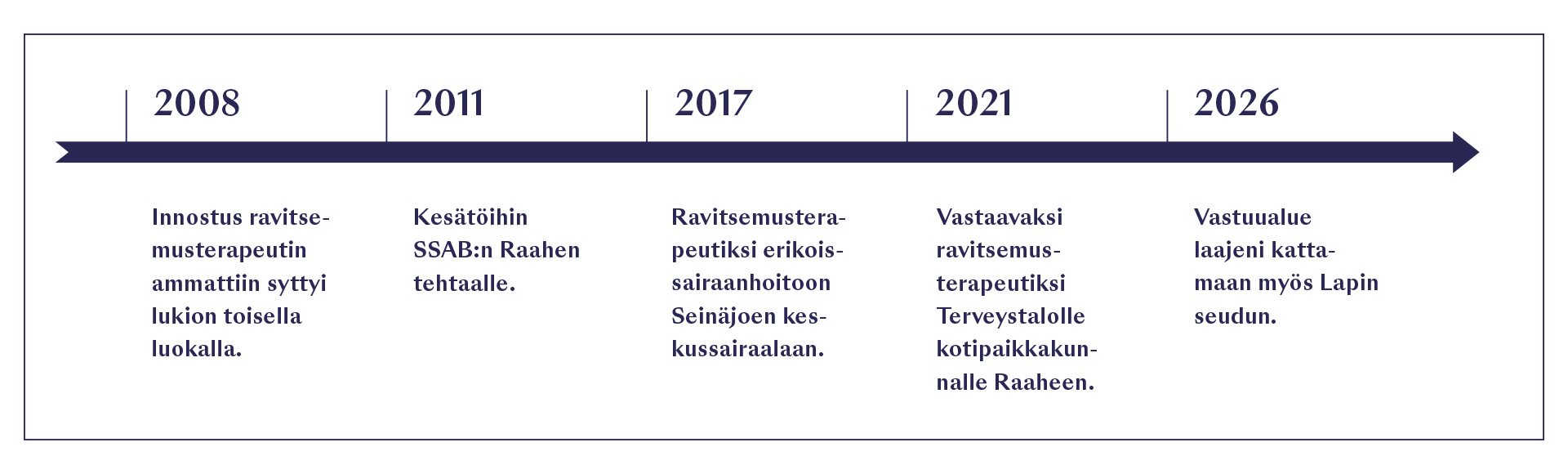 Ravitsemusterapeutin työtä saa tehdä vasta, kun on valmistunut. Niinpä Henna Piippo oli opiskeluaikanaan monen muun raahelaisen tavoin kesät töissä terästehtaassa ja ajatteli, että kunhan nyt jotain työtä on. Vasta oman alan työt aloitettuaan hän ymmärsi, miten arvokasta kokemusta kesätöissään sai.