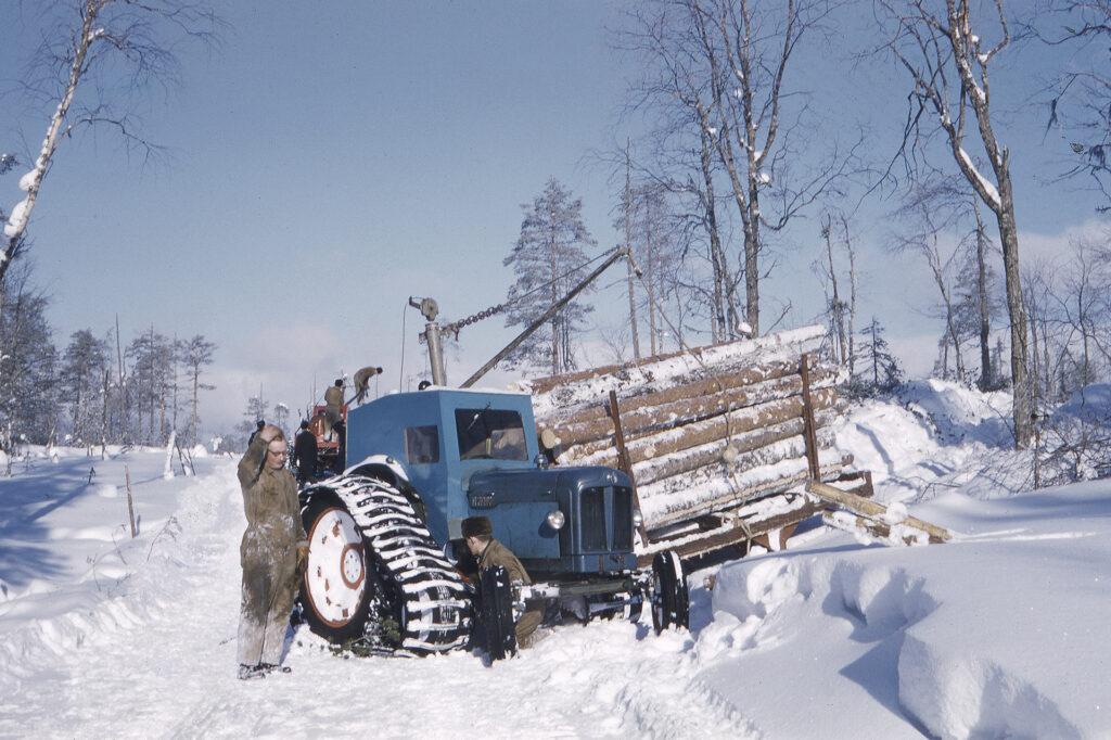 – Metsäkuljetuksissa maataloustraktorit tulivat aluksi hevosten rinnalle ja syrjäyttivät ne pikkuhiljaa. Tiloille oli ostettu traktoreita jo 30-luvulla, ja niille haluttiin löytää työtä myös talvikaudeksi, Rikala kertoo.